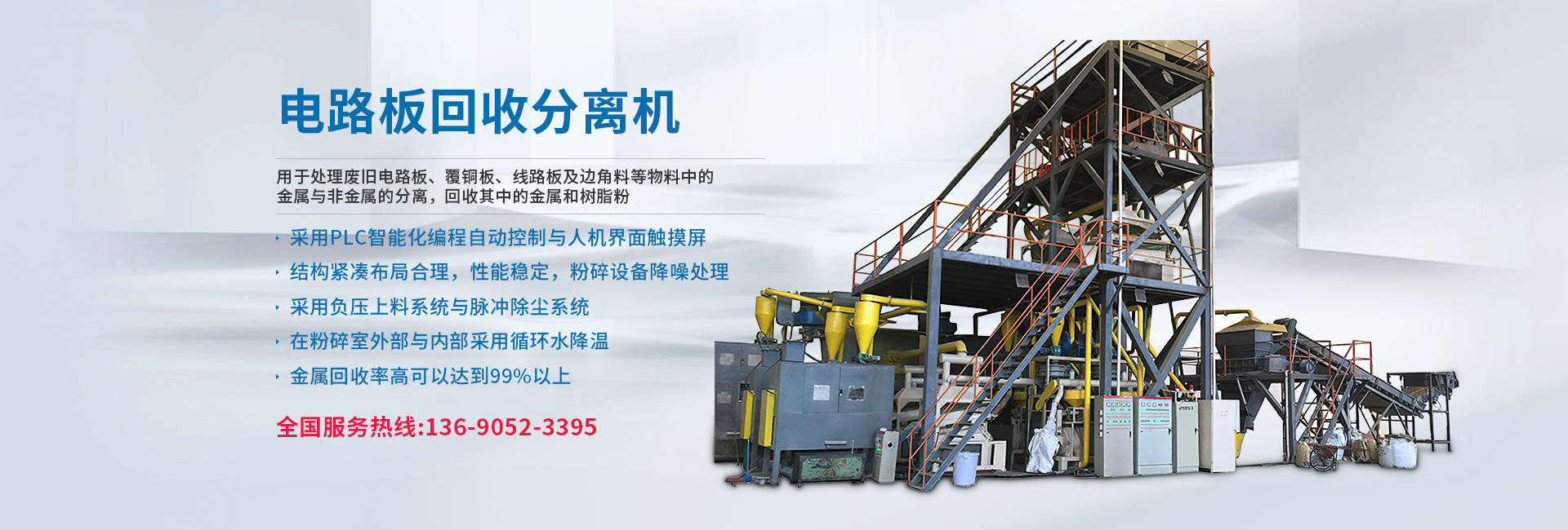 銅線回收機(銅米機) 電路板回收分離機 PCB元件拆解機 PCB貴金屬提取回收機 鋁塑分離機 大型銅鋁分離機 空調散熱器剝管機 混合塑料分離機 塑料橡膠硅膠分離機 色選機 高壓靜電分離機 比重分選機 渦電流分選機 磨粉機 撕碎機&破碎機